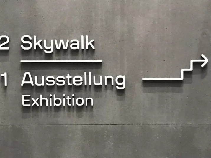 Das Leitsystem des Futuriums wurde in Zusammenarbeit mit der Agentur Heine Lenz Zizka (HLZ) entwickelt und von der Tischlerei Kohl hergestellt und angebracht.