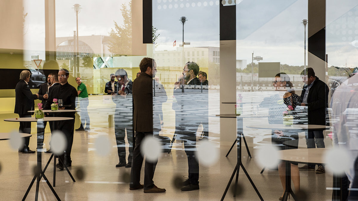 Mit mobilen Trennwänden und intelligent agierender Haustechnik können die Veranstaltungsflächen im Erdgeschoss des Hauses von 50 bis zu 670 qm unterschiedlich konfiguriert werden. Ausgestattet mit Tageslicht, hellen, akustisch aktiven Oberflächen, einer Vielzahl von ausfahrbaren Projektionsmedien und vollständiger barrierefreier Gestaltung bieten sie Raum zur Verständigung über die Welt von morgen.